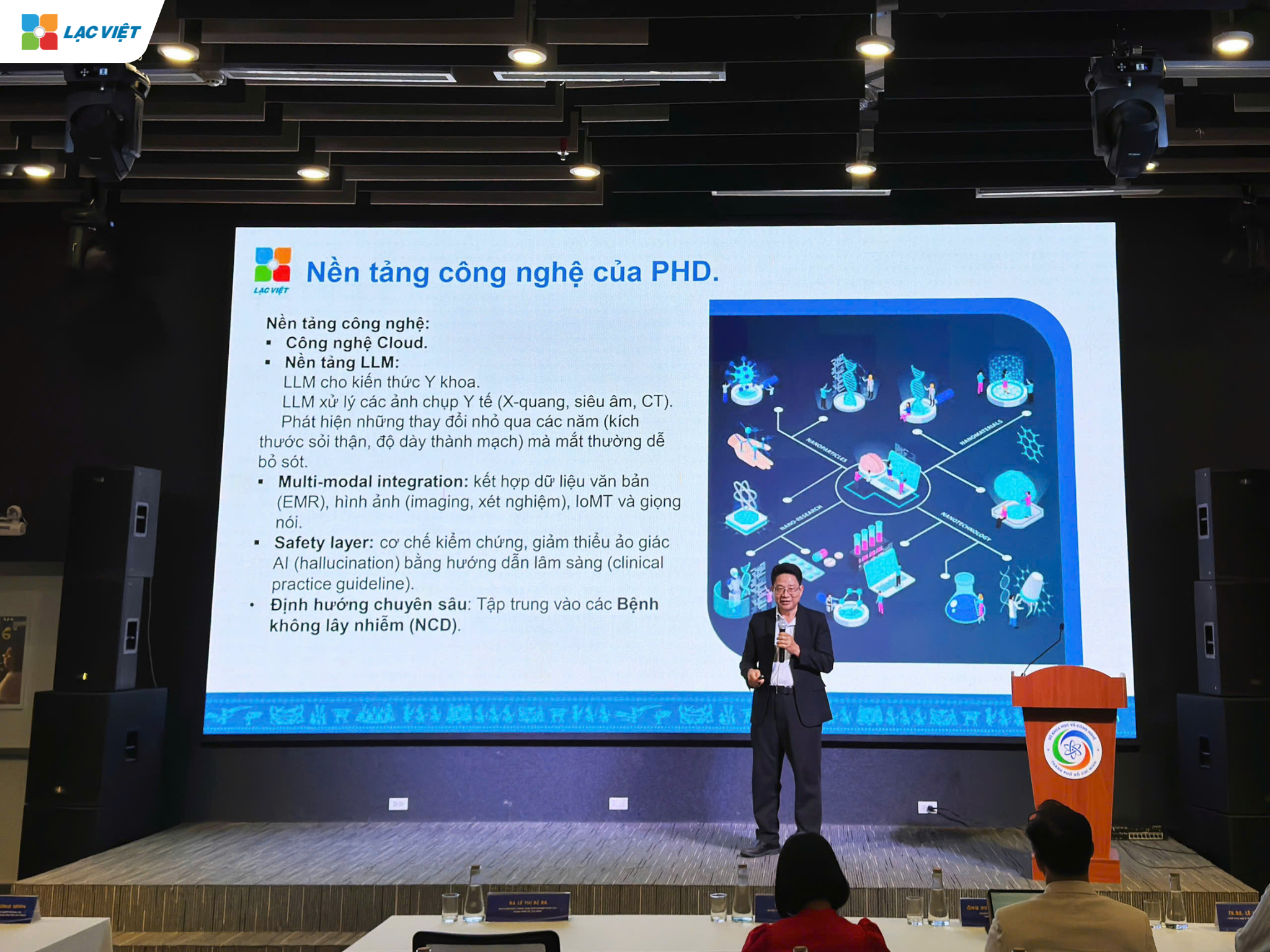 Bên cạnh hoạt động trình diễn giải pháp tại gian hàng, đại diện Lạc Việt cũng tham gia phiên tham luận chuyên đề với chủ đề “Bác sĩ sức khỏe cá nhân và hồ sơ sức khỏe cá nhân”. Bài trình bày cung cấp các nội dung làm rõ vai trò của PHR và PHD trong việc hình thành mô hình “bác sĩ số” đồng hành cùng mỗi người dân. Mô hình sẽ này góp phần xây dựng nền tảng dữ liệu chuẩn hóa, sẵn sàng liên thông và phục vụ hiệu quả cho toàn hệ thống y tế.